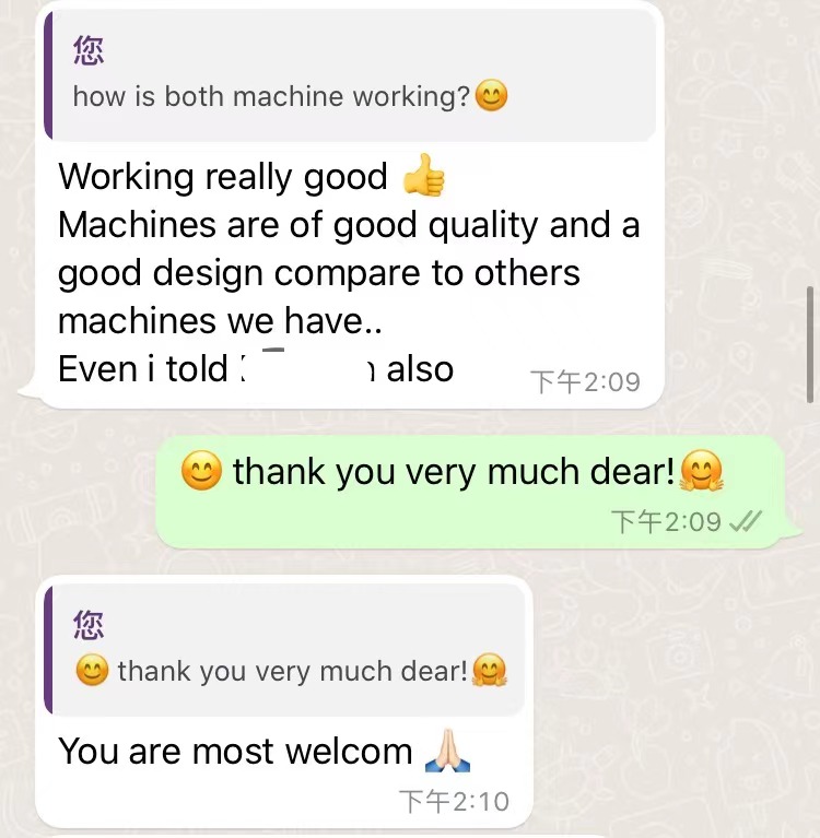 No matter which way customer choose ,we can also creat a group (advised :wechat ),which will put service technican and the sales in ,in addition , the company CEO will also be there . which means when the operator have any doubt or question for the operation ,they can leave message to the group ,our service technician will reply it as soon as they saw it .